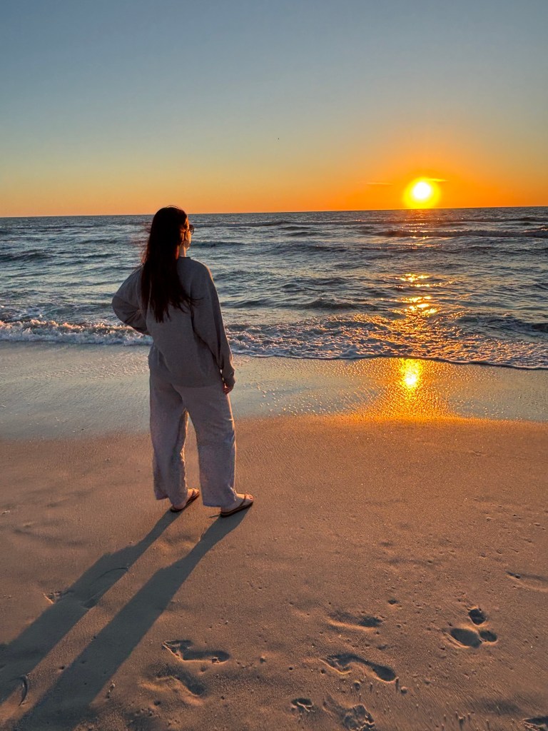 In the picture below I am admiring the beautiful sunset at the beach. I grew up at the Jersey Shore. The beach is important to me because it is more than just a place. It is a space where I feel free and grounded at the same time. The sound of the waves crashing and the rhythm of the tide help me clear my mind and release stress. Walking along the sand gives me a sense of peace, while watching the horizon reminds me of the vastness of the world and my place in it. The beach is also where I make some of my happiest memories, whether it is laughing with friends, watching a sunset, or simply enjoying a quiet moment alone. It connects me to nature, brings me joy, and inspires me to slow down and appreciate life.
